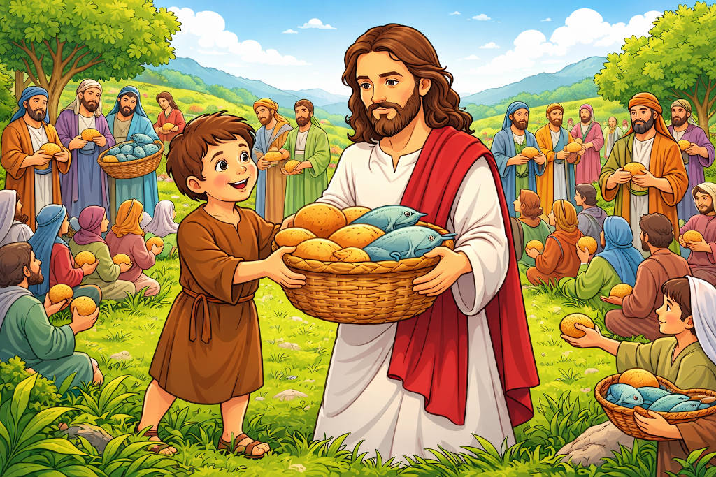 Jézus ma is akkor tud csodát tenni, ha mi is részt veszünk a csoda megvalósulásában. Ezt akkor tesszük, ha hálaadással fogadunk mindent, amit Istentől kapunk (nem csupán különféle javainkat, hanem saját magunkat, illetve magunkban Isten életét), aztán ezeket elkezdjük megosztani másokkal. A mi szolgálatunkat is szükségesnek tartja Isten, hogy általunk Ő táplálja azokat, akik Őrá éheznek.