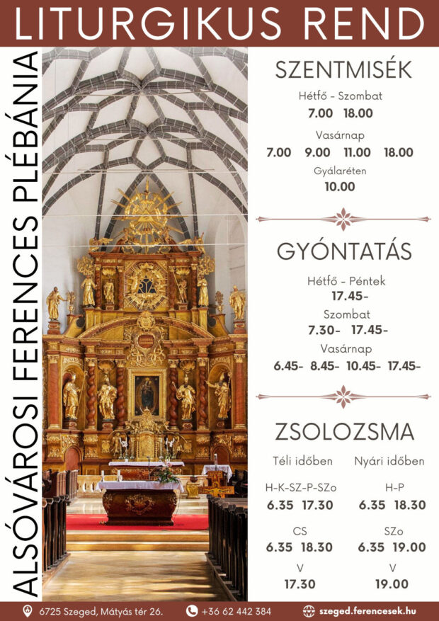 * rorate mise (adventi időben) 6.00-kor kezdődik (akkor nincs 7-kor szentmise)