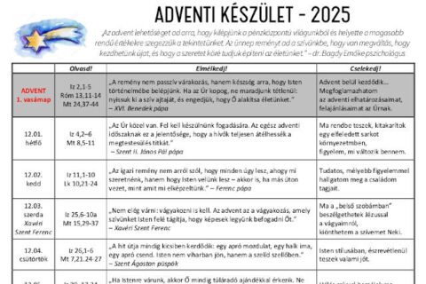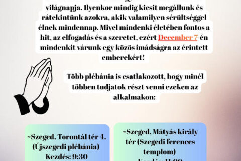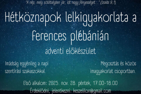 Advent 2. vasárnapja Az adventi RORÁTE SZENTMISÉK reggel 6-kor kezdődnek. Utána közösen imádkozzuk a zsolozsmát. Az adventi koszorú gyertyagyújtásai pedig szombatonként du. 5-től vannak a templom előtti téren, ill. vasárnaponként a 9 órai szentmise keretében. Szeplőtelen Fogantatás ünnepén, dec. 8-án, hétfőn reggel 6-kor és Tovább…