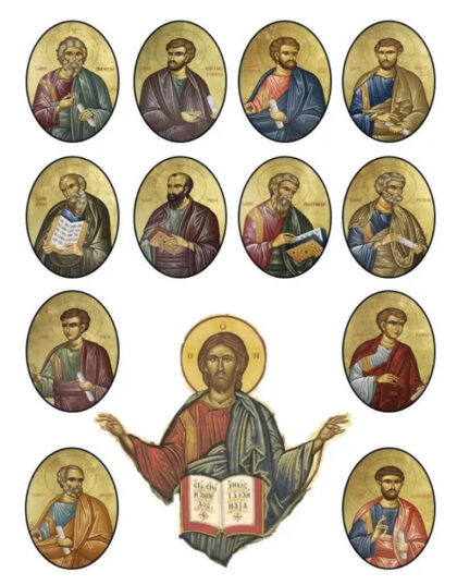 Három gyűrű képződik Jézus körül. A középpont Ő maga, Akiből gyógyító, valamint tanító erő árad. Köréje gyűlnek az új nép atyái, akik részesülnek az ő erejében, lelkében, akiknek az lesz a küldetésük (mint az egész Egyházé is), hogy az egész emberiséget vonják be az Atya imádásába.